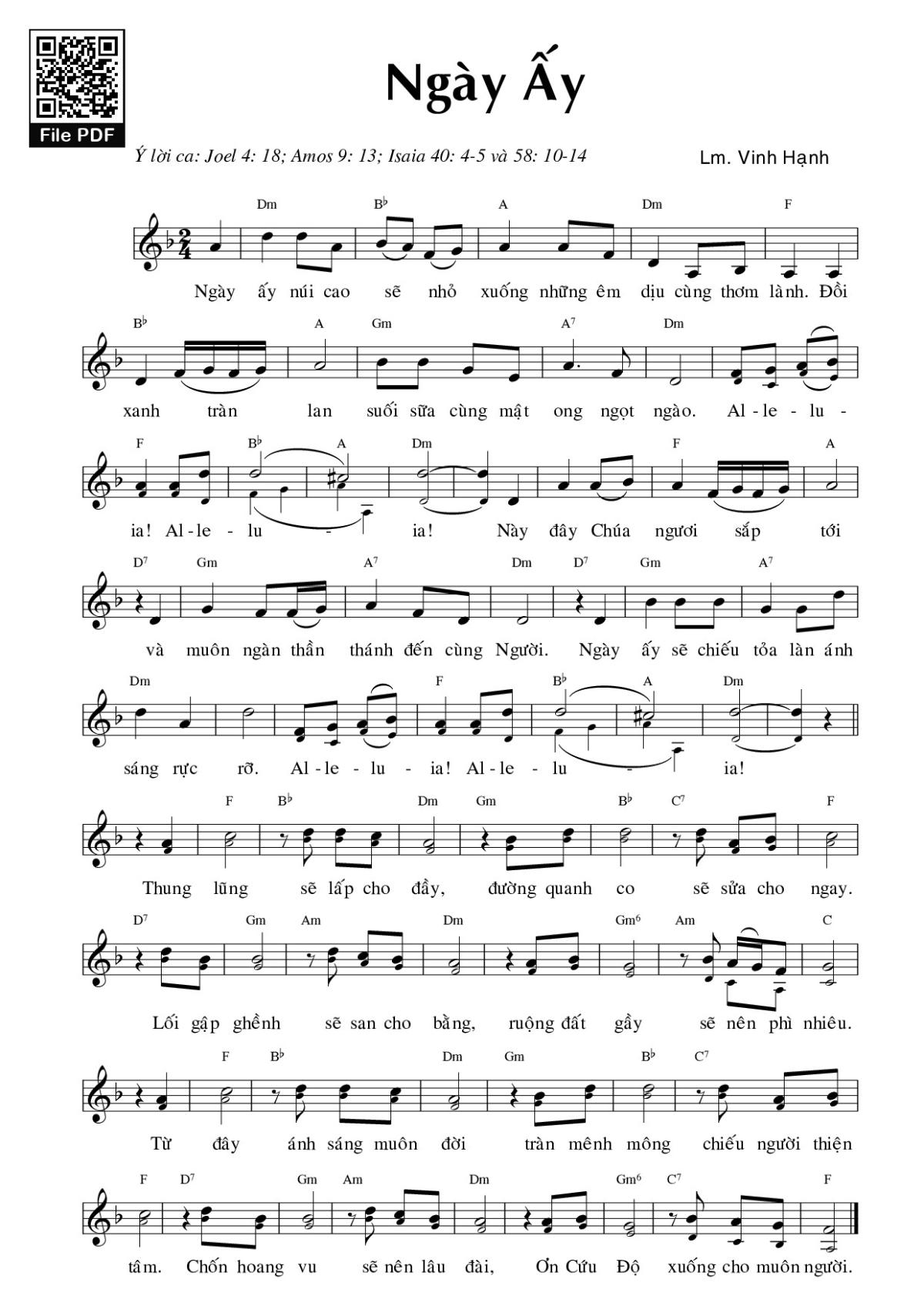 Ngày ấy núi cao sẽ nhỏ xuống những êm dịu cùng thơm lành, Đồi xanh tràn lan suối sữa cùng mật ong ngọt ngào, Al-le-lu-ia, Al-le-lu-ia.