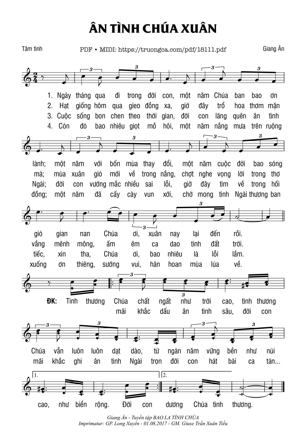 Giang Ân Ngày tháng qua đi trong đời con một năm Chúa ban bao ơn lành một năm với bốn mùa thay đổi [PDF] [Sheet] [Lyrics] [Mp4/Midi]