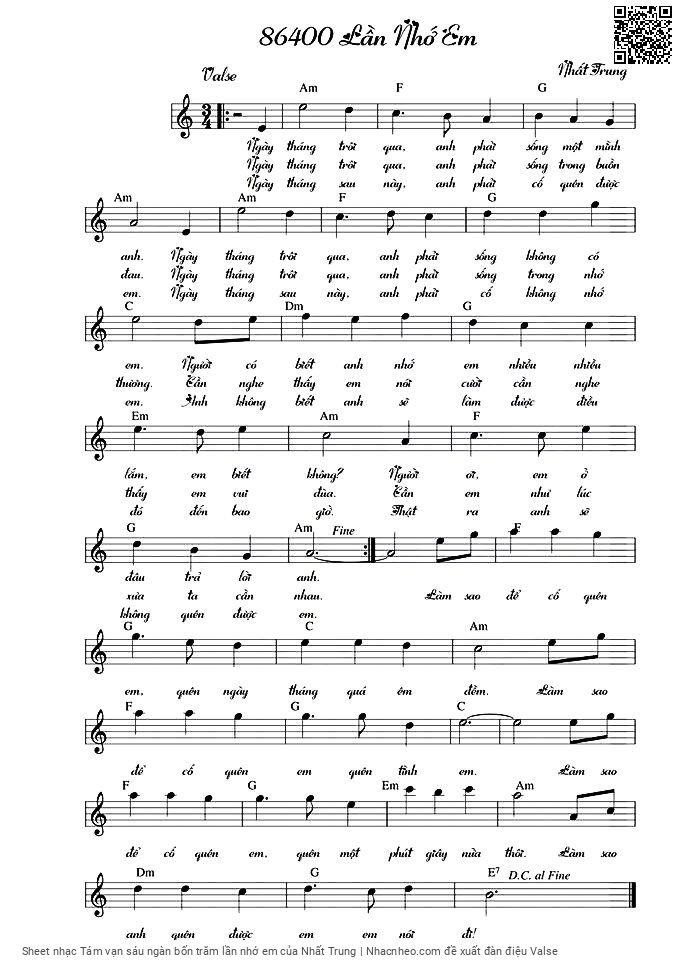 More similar sheets PDF Tám vạn sáu ngàn bốn trăm lần nhớ em:
