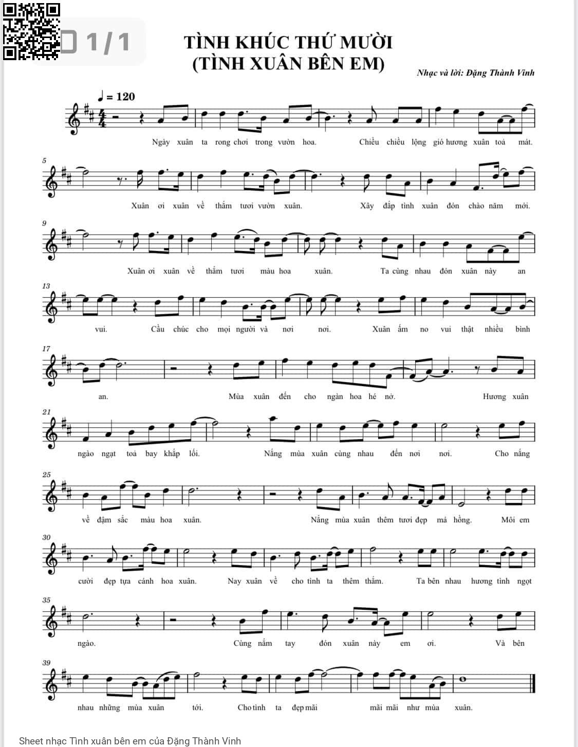 Đặng Thành Vinh Ngày xuân ta rong chơi trong vườn hoa Chiều chiều lộng gió hương xuân tỏa ngát [PDF] [Sheet] [Lyrics] [Mp4/Midi]