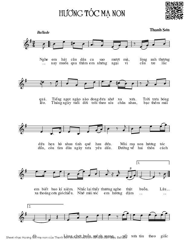 Thanh Sơn Nghe em hát câu dân ca sao mượt mà lòng anh thương quá [PDF] [Sheet] [Lyrics] [Mp4/Midi]