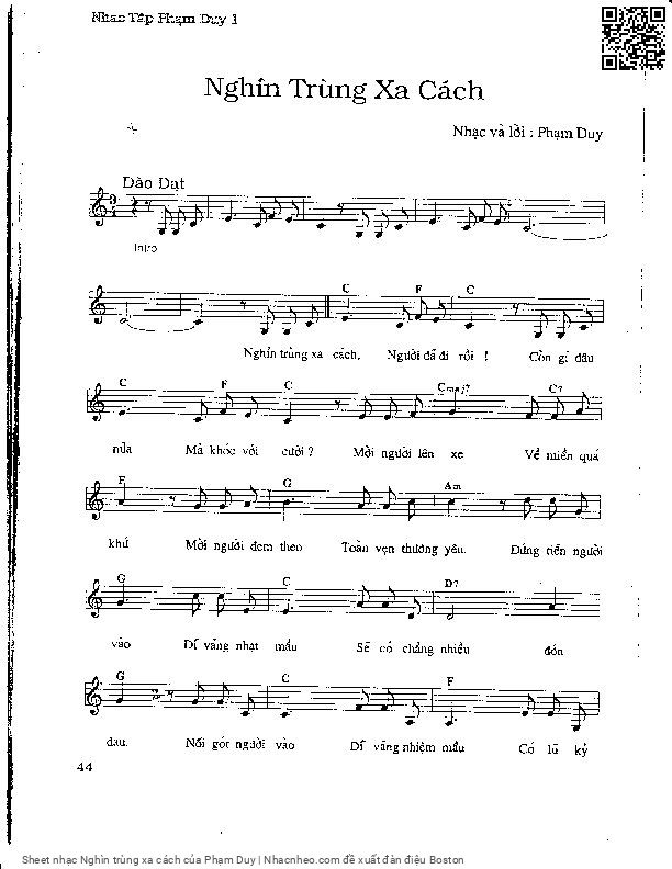 Phạm Duy Nghìn trùng xa cách người đã đi rồi Còn gì đâu nữa mà khóc với cười [PDF] [Sheet] [Lyrics] [Mp4/Midi]