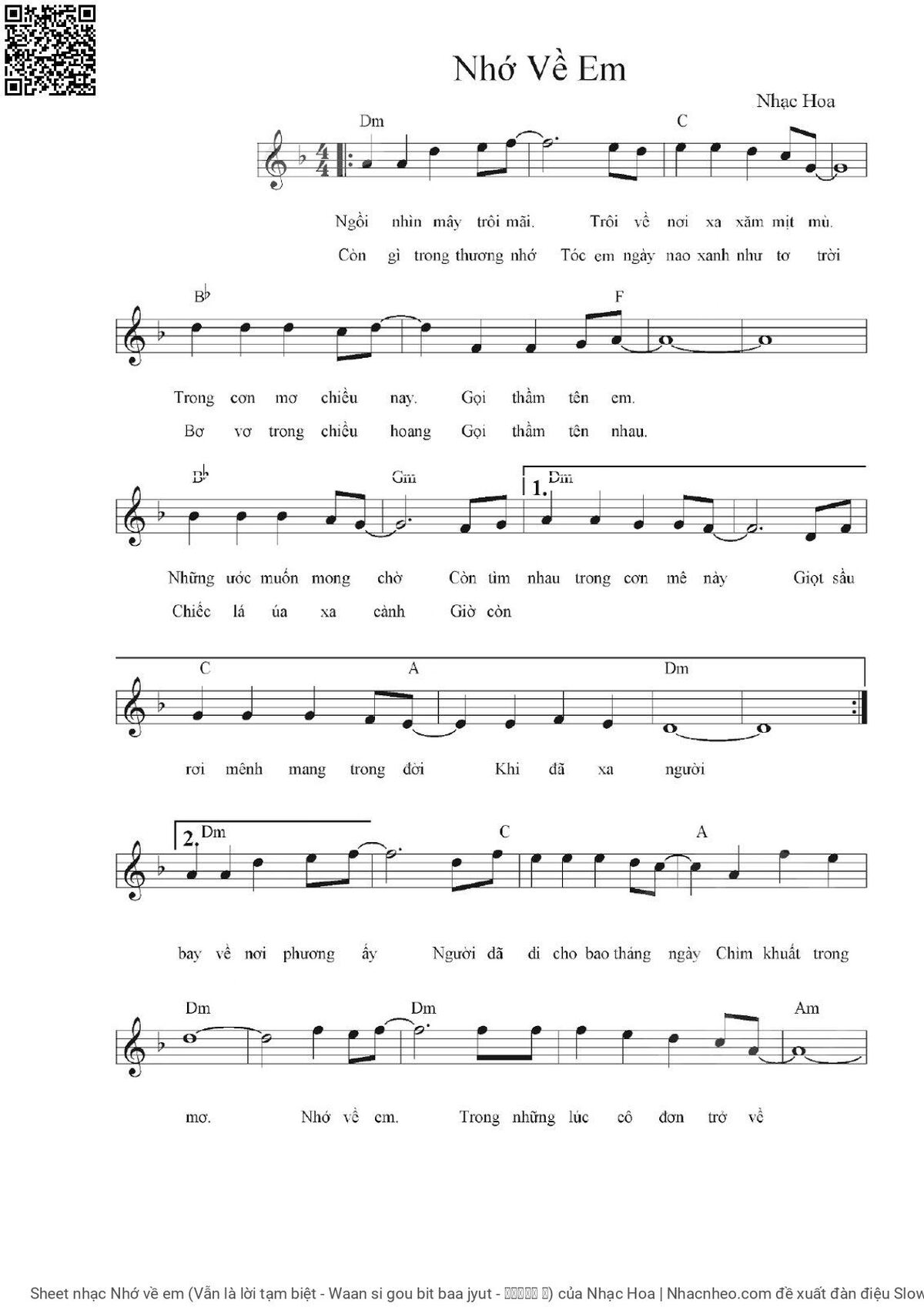 More similar sheets PDF Nhớ về em (Vẫn là lời tạm biệt - Waan si gou bit baa jyut - 还是告别吧 粤):