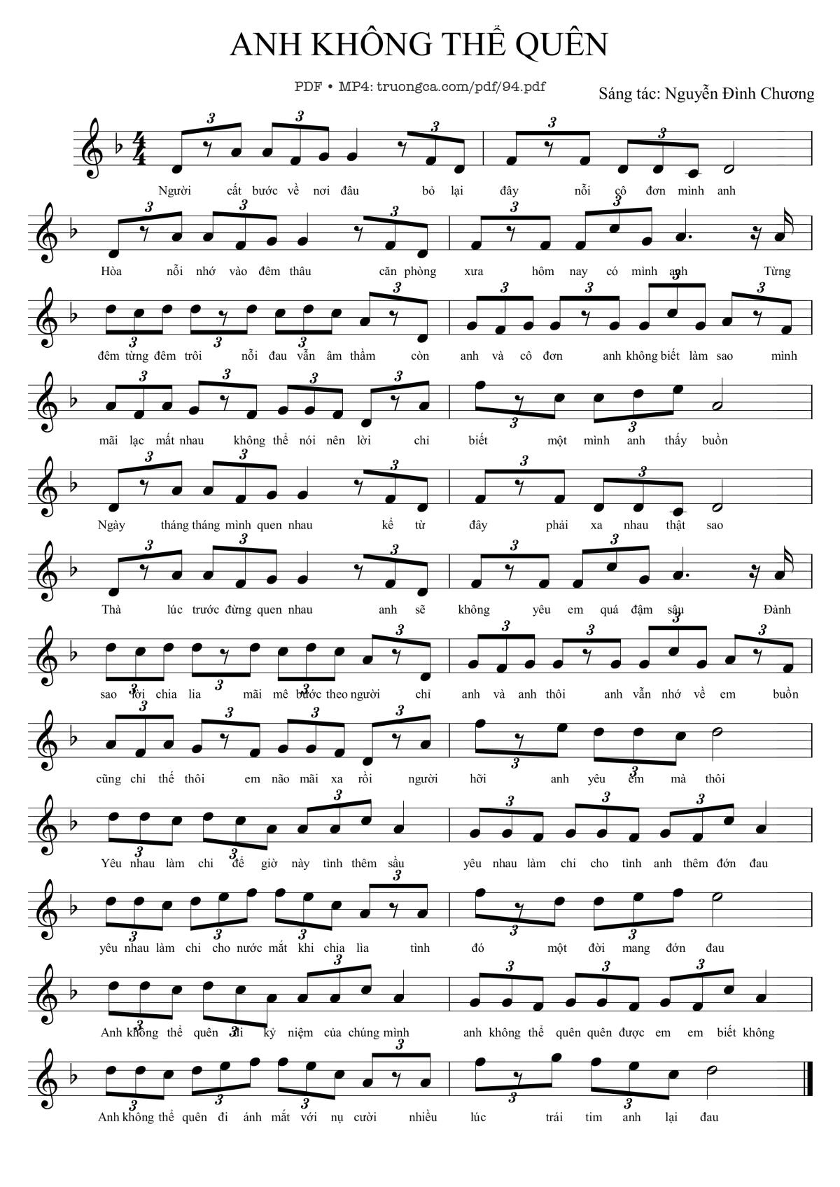 The Videos/audios Anh không thể quên by Nguyễn Đình Chương were embed from Youtube, Musescore or the other 3rd links. Videos are subject to 3rd's copyright control and may be removed by YouTube's copyright rules and 3rd's policies or maybe included advertisements. If you cannot access to these songs, this mean that have been removed.