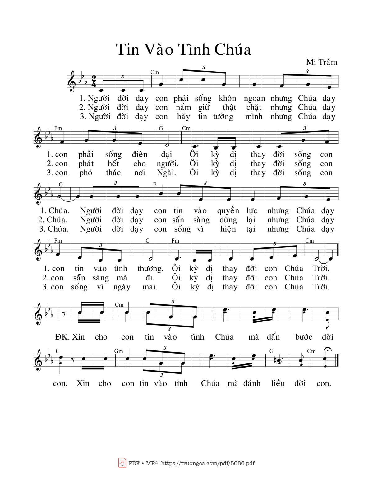 The Videos/audios Tin vào tình Chúa by Lm. Mi Trầm were embed from Youtube, Musescore or the other 3rd links. Videos are subject to 3rd's copyright control and may be removed by YouTube's copyright rules and 3rd's policies or maybe included advertisements. If you cannot access to these songs, this mean that have been removed.