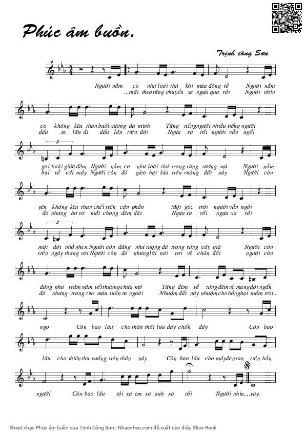 The Videos/audios Phúc âm buồn by Trịnh Công Sơn were embed from Youtube, Musescore or the other 3rd links. Videos are subject to 3rd's copyright control and may be removed by YouTube's copyright rules and 3rd's policies or maybe included advertisements. If you cannot access to these songs, this mean that have been removed.