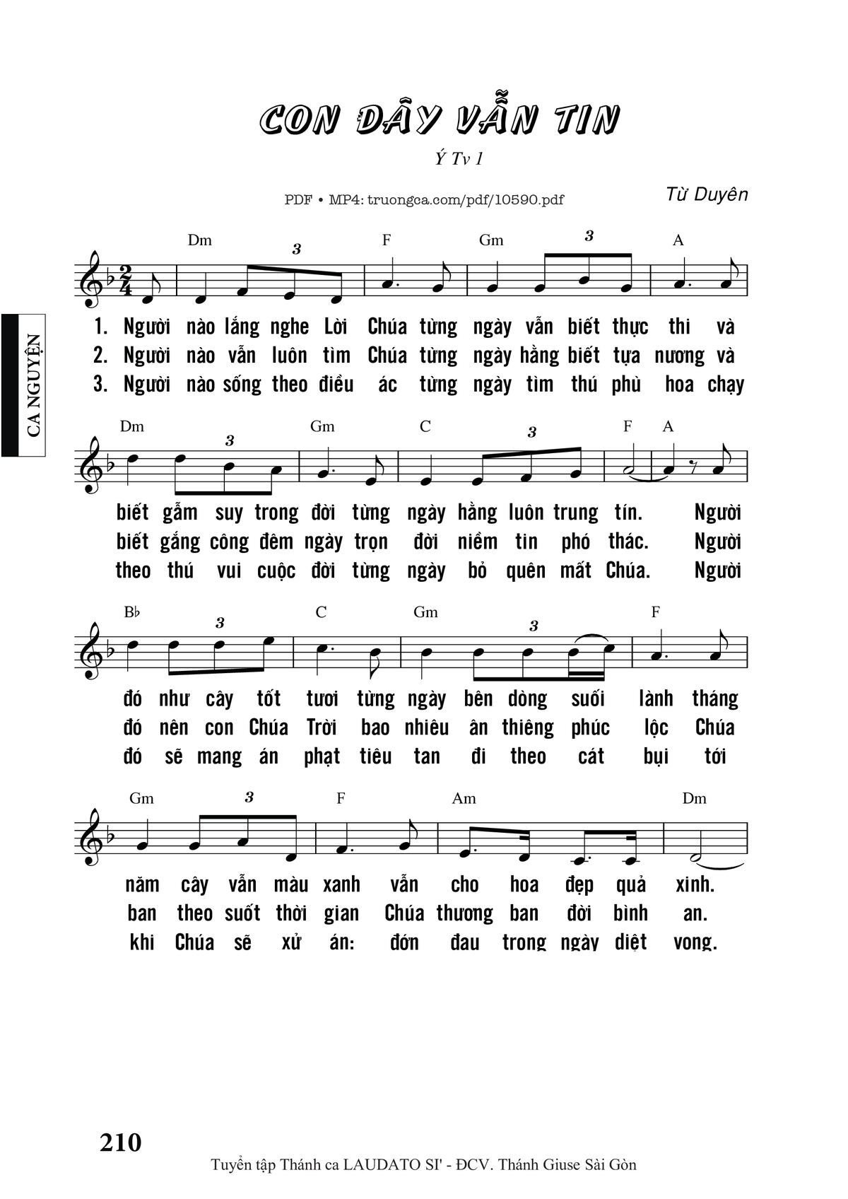 Từ Duyên Người nào lắng nghe Lời Chúa từng ngày vẫn biết thực thi và biết gẫm suy trong đời từng ngày hằng [PDF] [Sheet] [Lyrics] [Mp4/Midi]