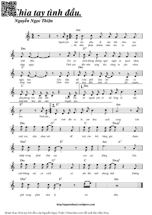 Nguyễn Ngọc Thiện Người yêu hỡi xin giấu lệ sầu khi chia tay tình đầu [PDF] [Sheet] [Lyrics] [Mp4/Midi]