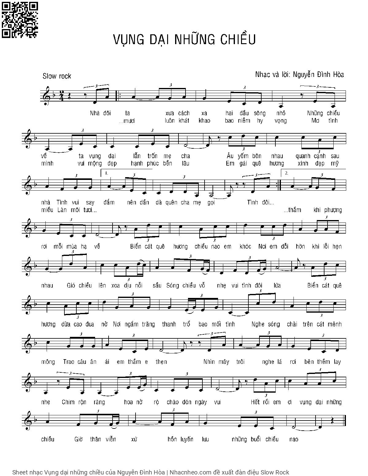 Nguyễn Đình Hòa Nhà đôi ta xưa cách xa hai đầu sông nhỏ [PDF] [Sheet] [Lyrics] [Mp4/Midi]