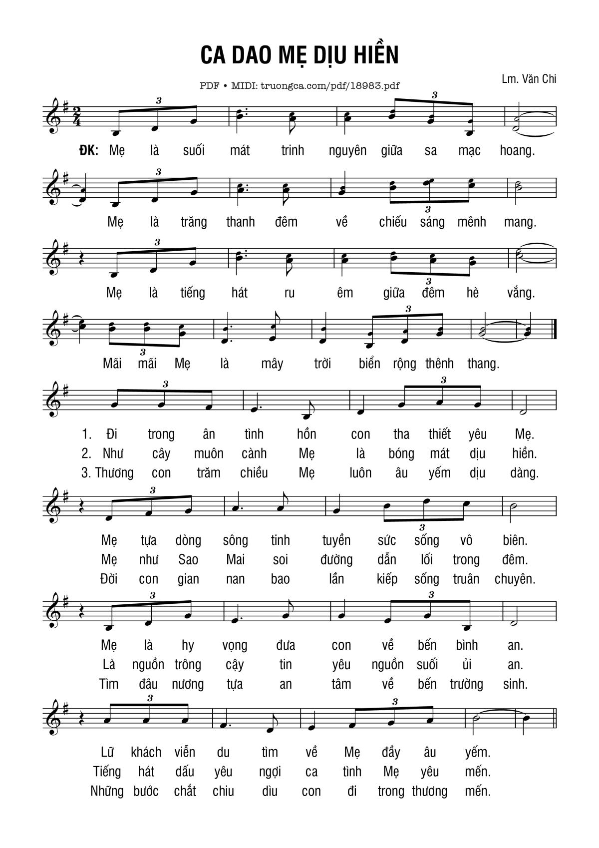 More similar sheets PDF Ca Dao Mẹ Dịu Hiền: