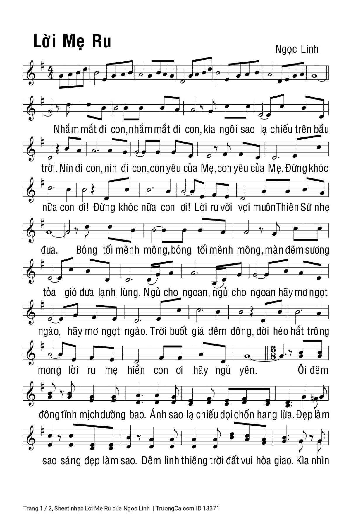 Nhắm mắt đi con, nhắm mắt đi con kìa ngôi sao lạ chiếu trên bầu trời. Nín đi con, nín đi con, con yêu của mẹ, con yêu của mẹ. Đừng khóc nữa con ơi! Đừng khóc nữa con ơi!