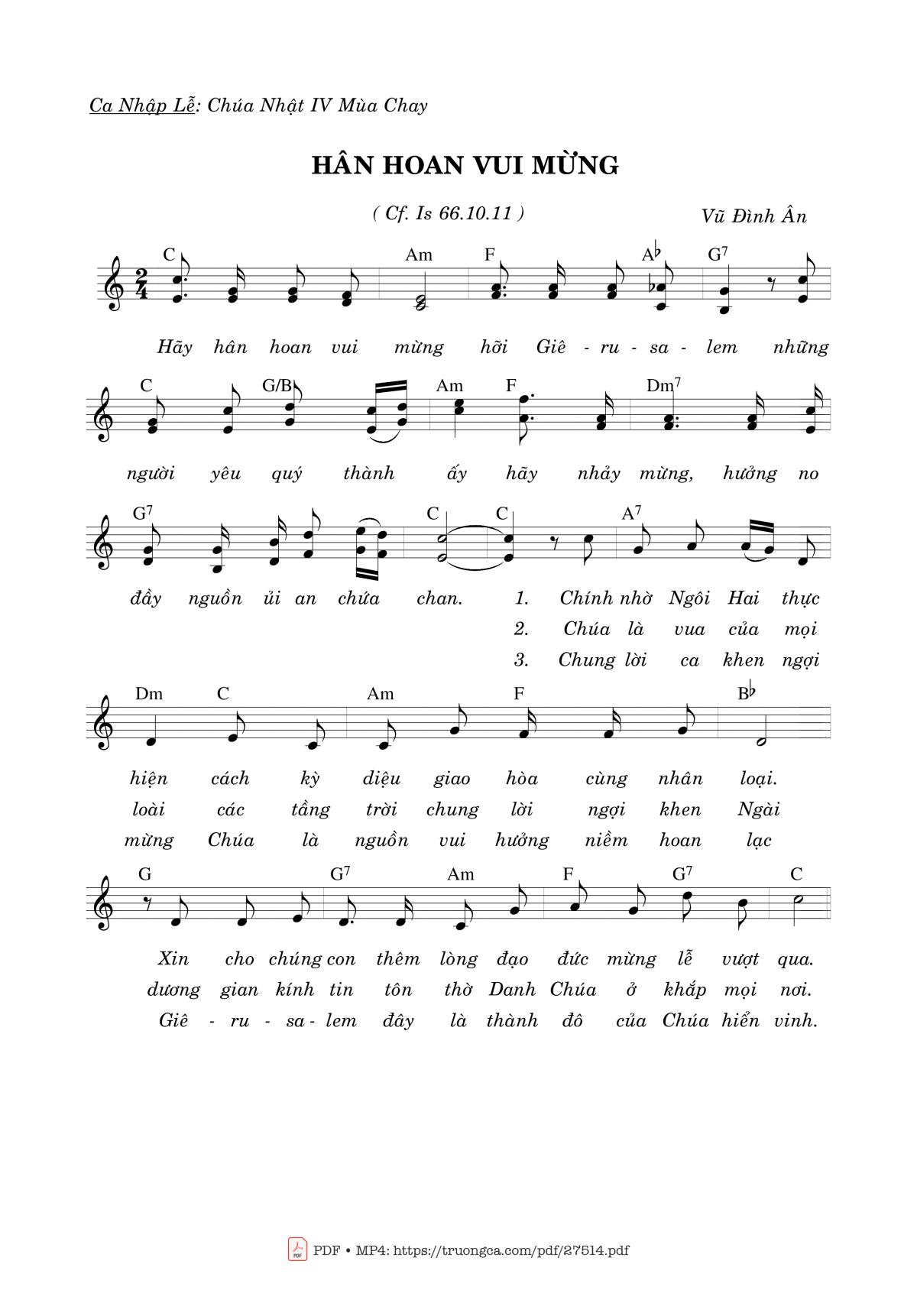 Vũ Đình Ân Nhập Lễ Chúa Nhật Mùa Chay Hãy hân hoan vui mừng hới Giêrusalem những người yêu quí thành ấy hãy nhảy mừng [PDF] [Sheet] [Lyrics] [Mp4/Midi]