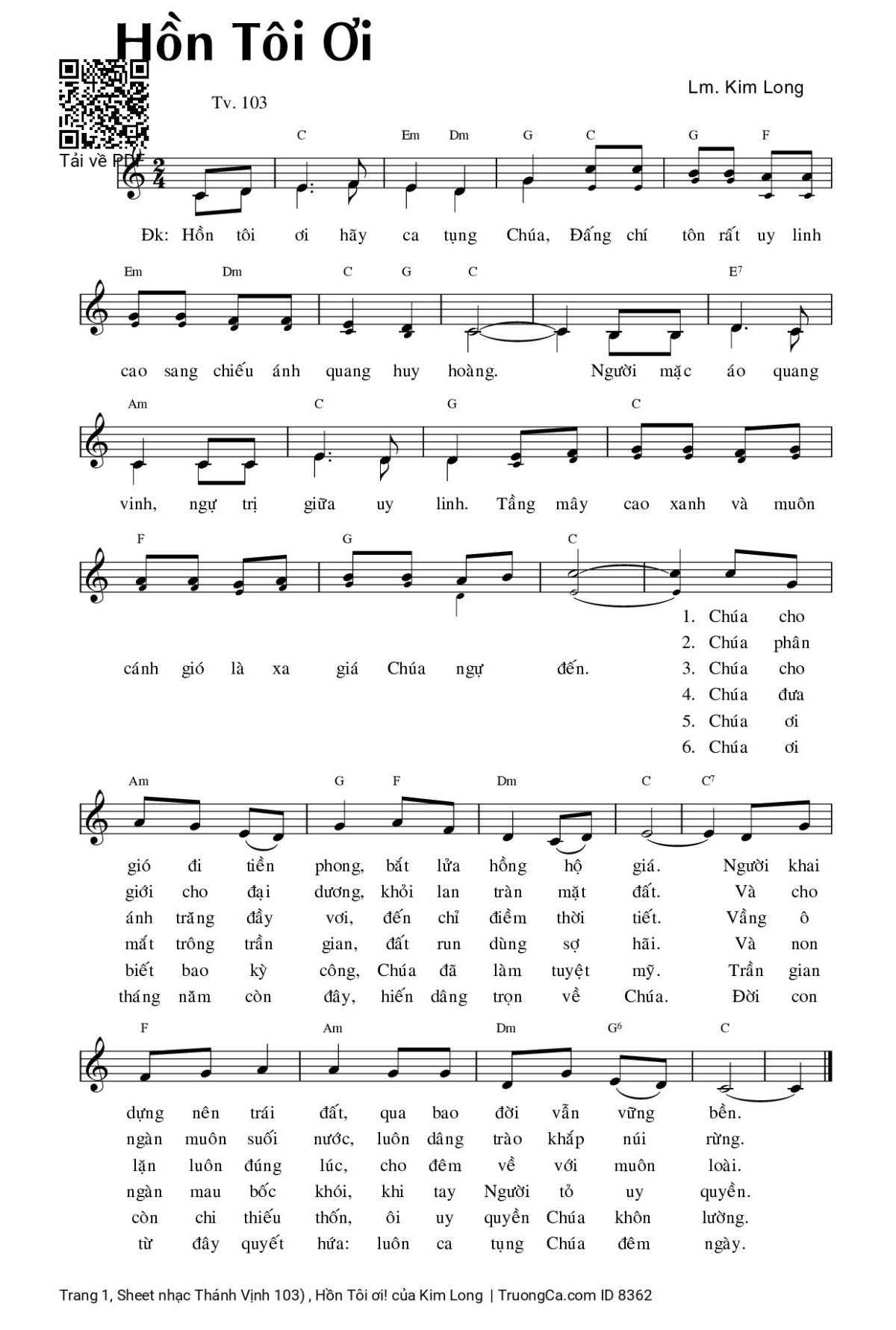 More similar sheets PDF Thánh Vịnh 103) , Hồn Tôi ơi!: