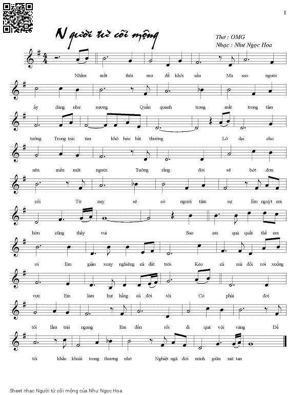 Như Ngọc Hoa Nhớ mắt thôi mơ để khỏi sầu Mà sao người ấy dáng như sương [PDF] [Sheet] [Lyrics] [Mp4/Midi]