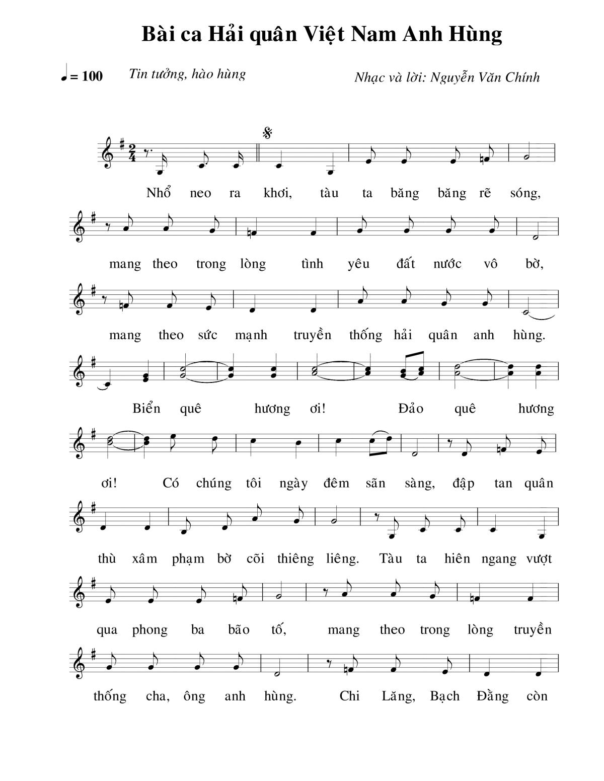 Nguyễn Văn Chính Nhổ neo ra khơi tàu ta băng băng rẽ sóng Mang theo trong lòng tình yêu đất nước vô bờ [PDF] [Sheet] [Lyrics] [Mp4/Midi]