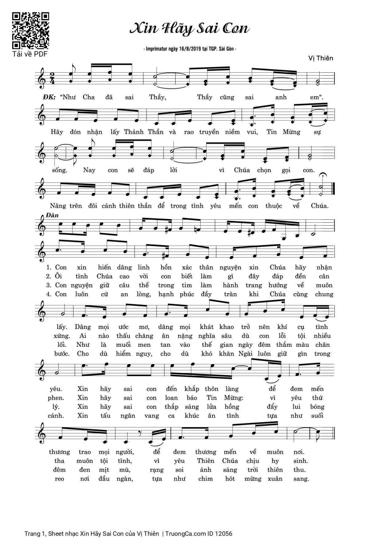 Vị Thiên Như Cha đã sai Thầy Thầy cũng sai anh em Hãy đón nhận lấy Thánh Thần và rao truyền niềm vui [PDF] [Sheet] [Lyrics] [Mp4/Midi]