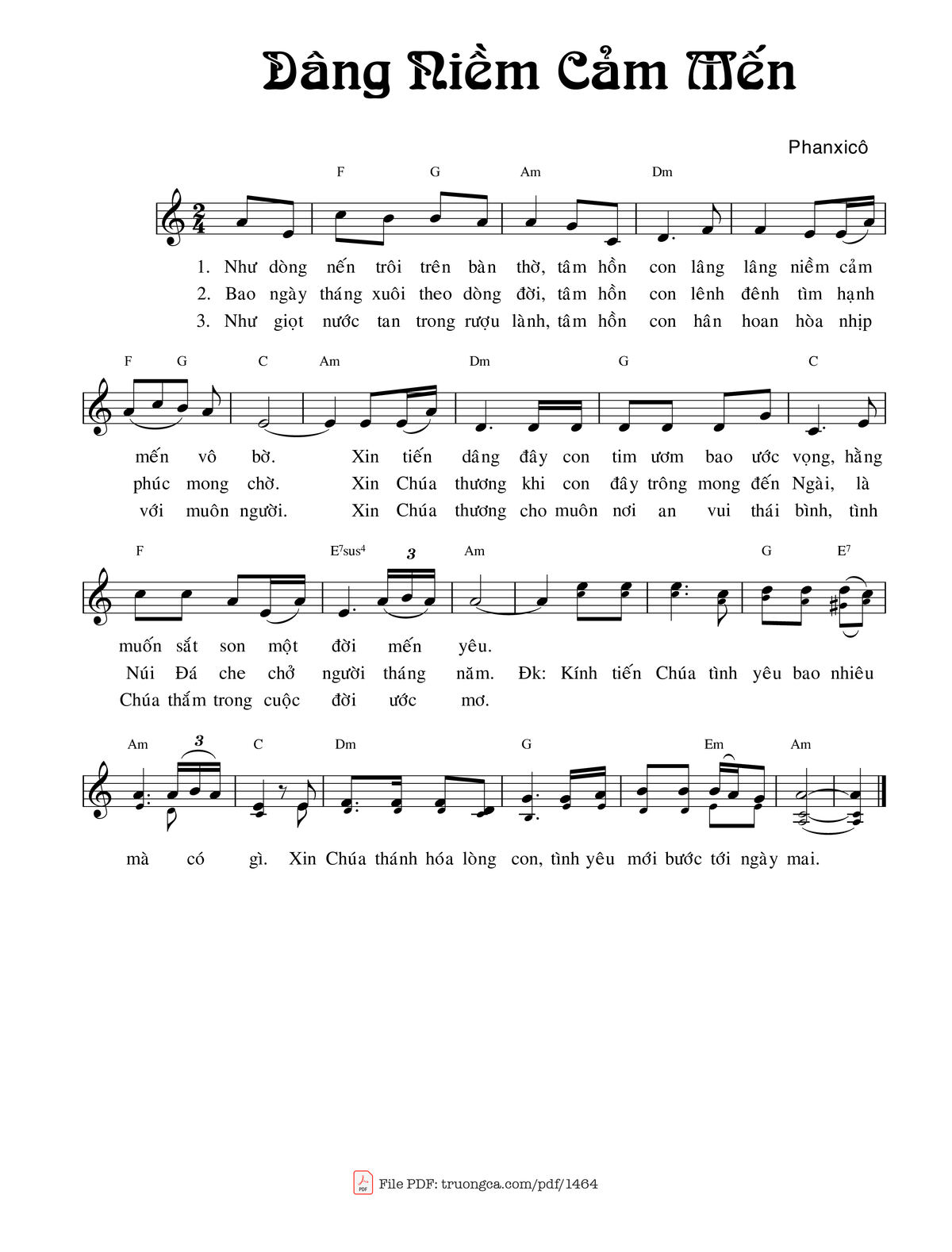 Phanxicô Như dòng nến trôi trên bàn thờ Tâm hồn con lâng lâng niền cảm mến vô bờ [PDF] [Sheet] [Lyrics] [Mp4/Midi]