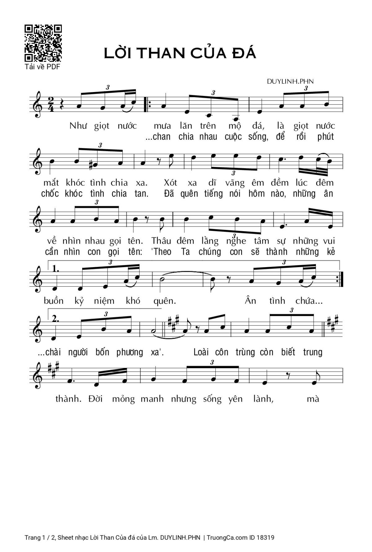 Transposition is the process of moving a song's melody and chords up or down in pitch by a constant interval. The direction of the transposition tool is indicated by a plus (+) sign for up and a minus (-) sign for down. Hover mouse over chords signs to see the chords chart of Lời Than Của đá song.