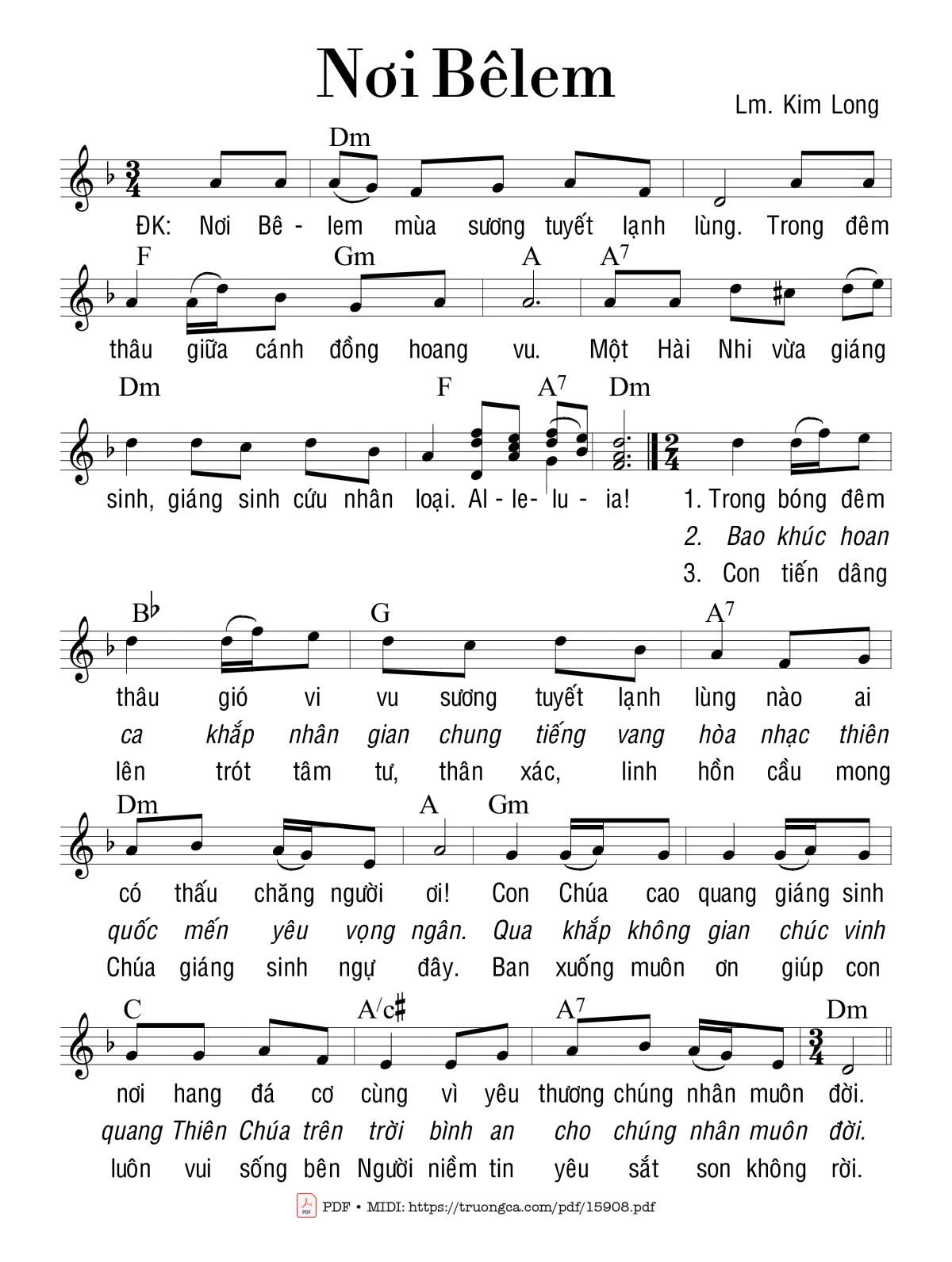 Điệp khúc. Nơi Bê-lem mùa sương tuyết lạnh lùng. Trong đêm thâu giữa cánh đồng hoang vu. Một trẻ nhỏ vừa giáng sinh, giáng sinh cứu nhân loại. Al-le-lu-ia.