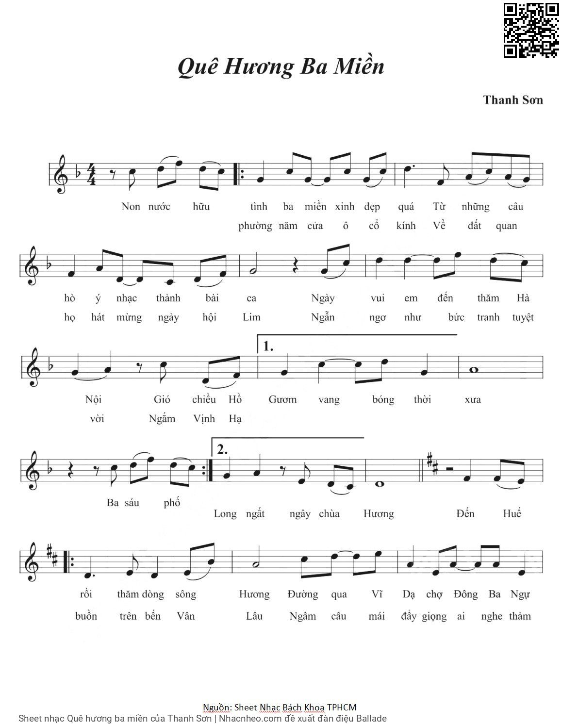 Thanh Sơn Non nước hữu tình ba miền xinh đẹp quá [PDF] [Sheet] [Lyrics] [Mp4/Midi]