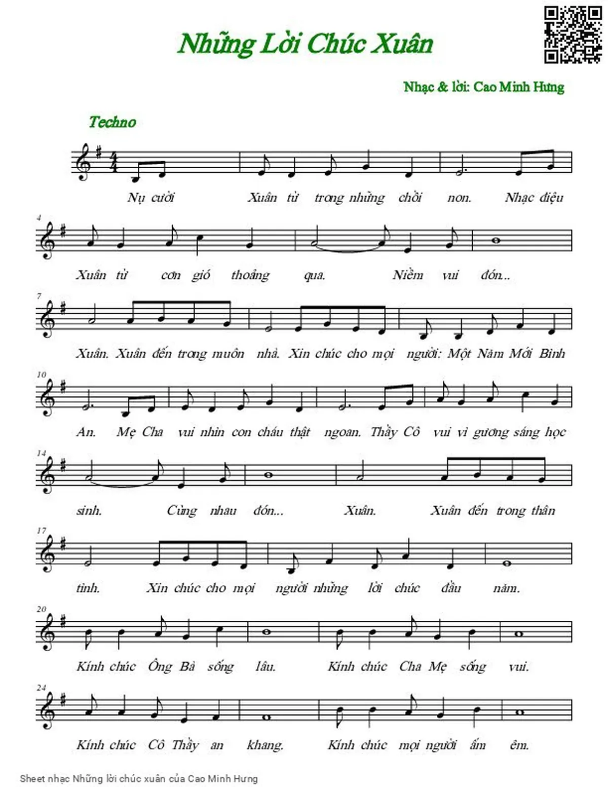 Cao Minh Hưng Nụ cười xuân từ trong những chồi non [PDF] [Sheet] [Lyrics] [Mp4/Midi]
