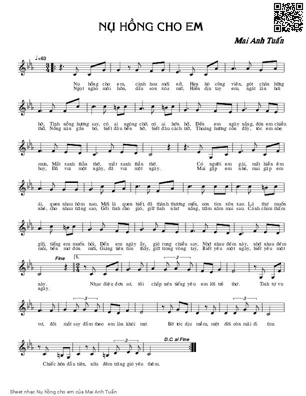 Mai Anh Tuấn Nụ hồng cho em cánh hoa mới nở [PDF] [Sheet] [Lyrics] [Mp4/Midi]