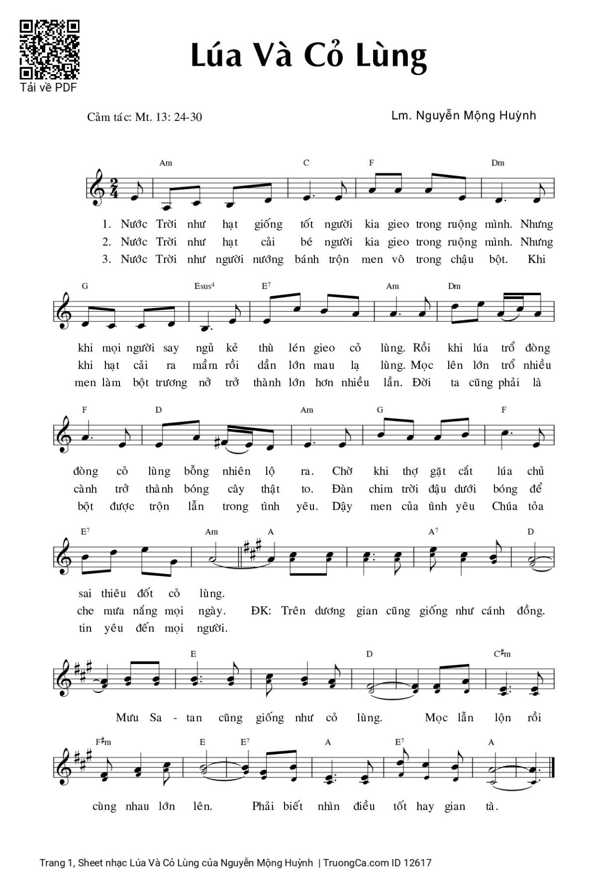 Điệp khúc. Trên dương gian cũng giống như cánh đồng. Mưu Sa-tan cũng giống như cỏ lùng. Mọc lẫn lộn rồi cùng nhau lớn lên. Phải biết nhìn điều tốt hay gian tà.