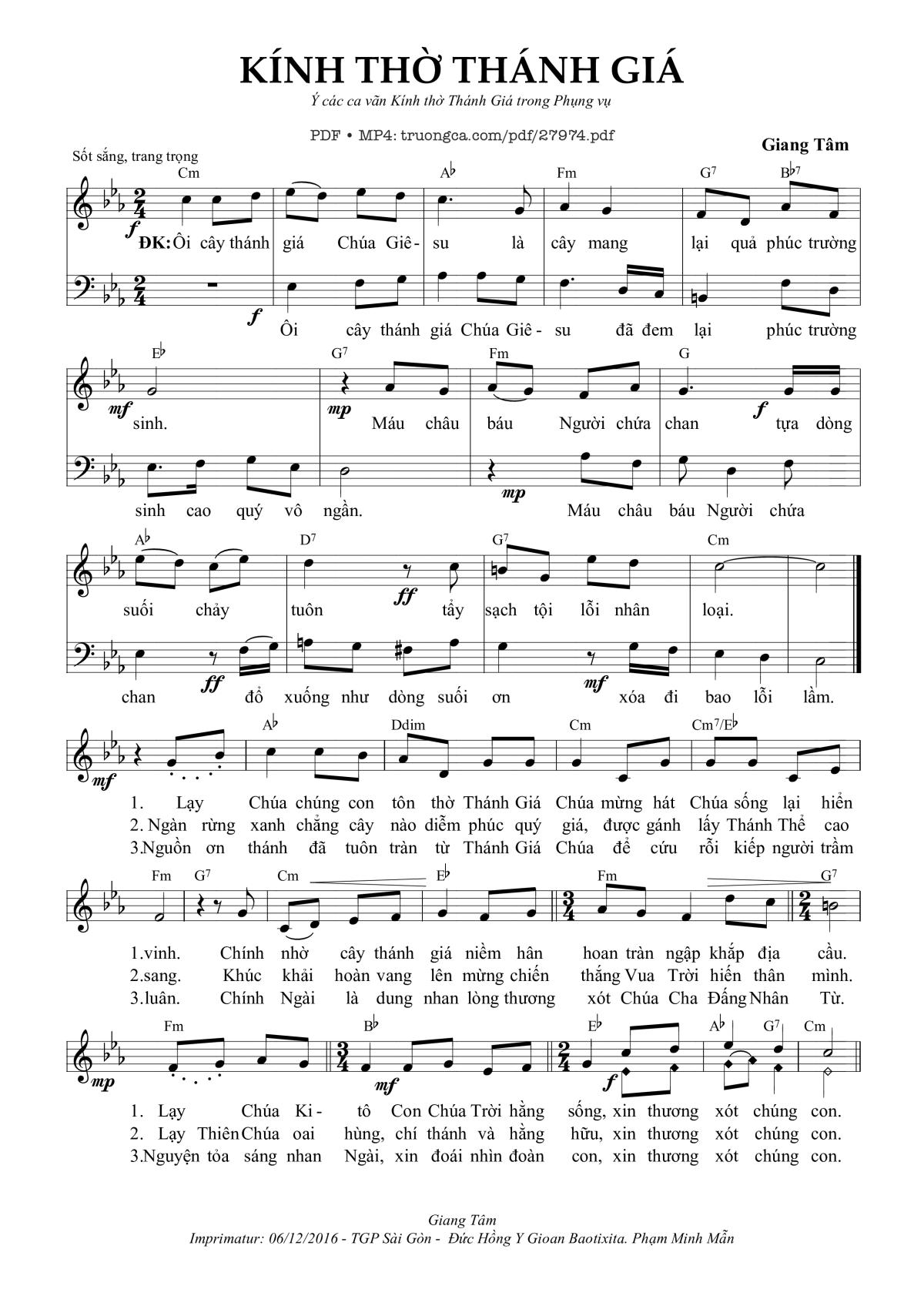 Giang Tâm Ôi cây thánh giá Chúa Giêsu là cây mang lại quả phúc trường sinh [PDF] [Sheet] [Lyrics] [Mp4/Midi]
