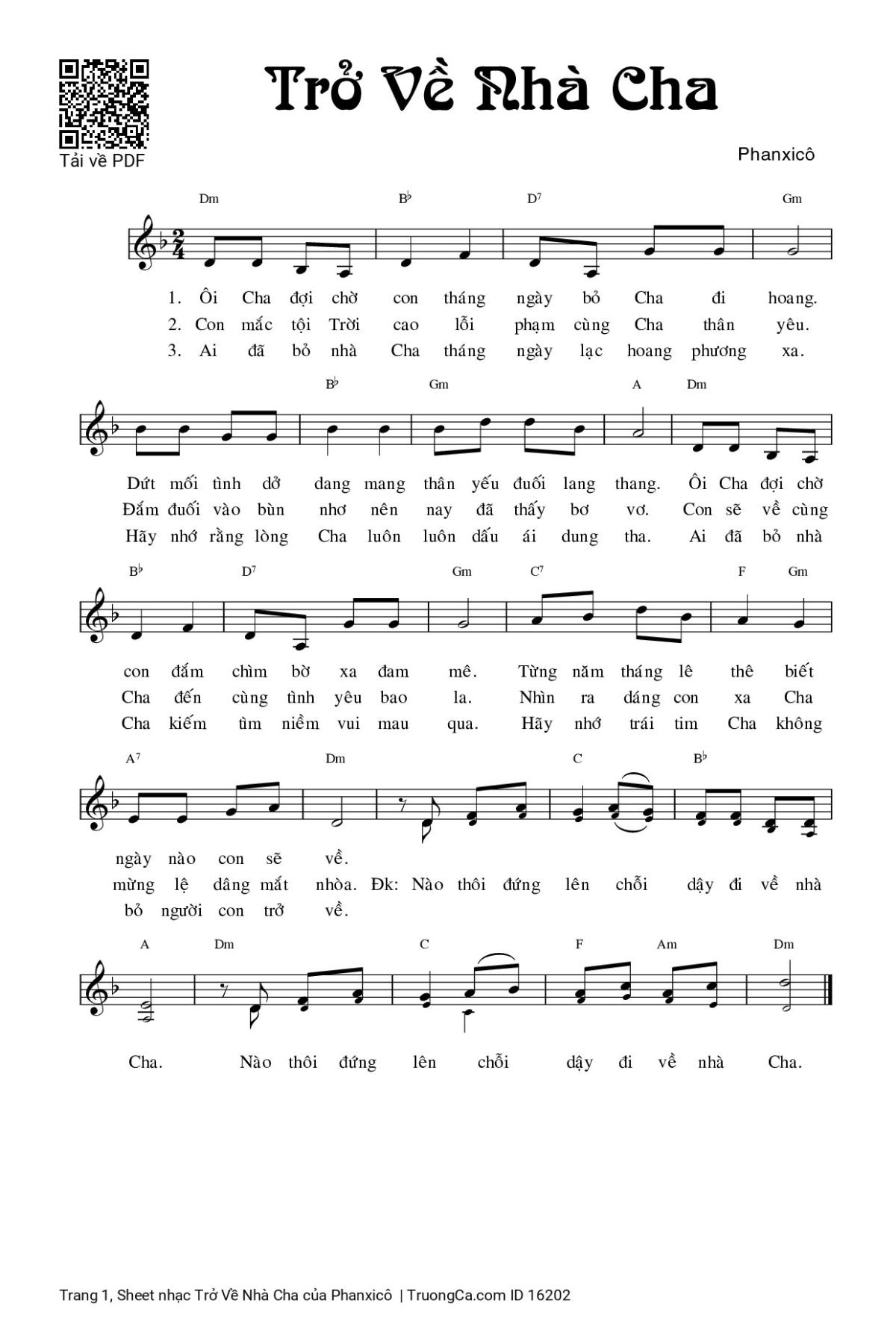 Transposition is the process of moving a song's melody and chords up or down in pitch by a constant interval. The direction of the transposition tool is indicated by a plus (+) sign for up and a minus (-) sign for down. Hover mouse over chords signs to see the chords chart of Trở Về Nhà Cha song.