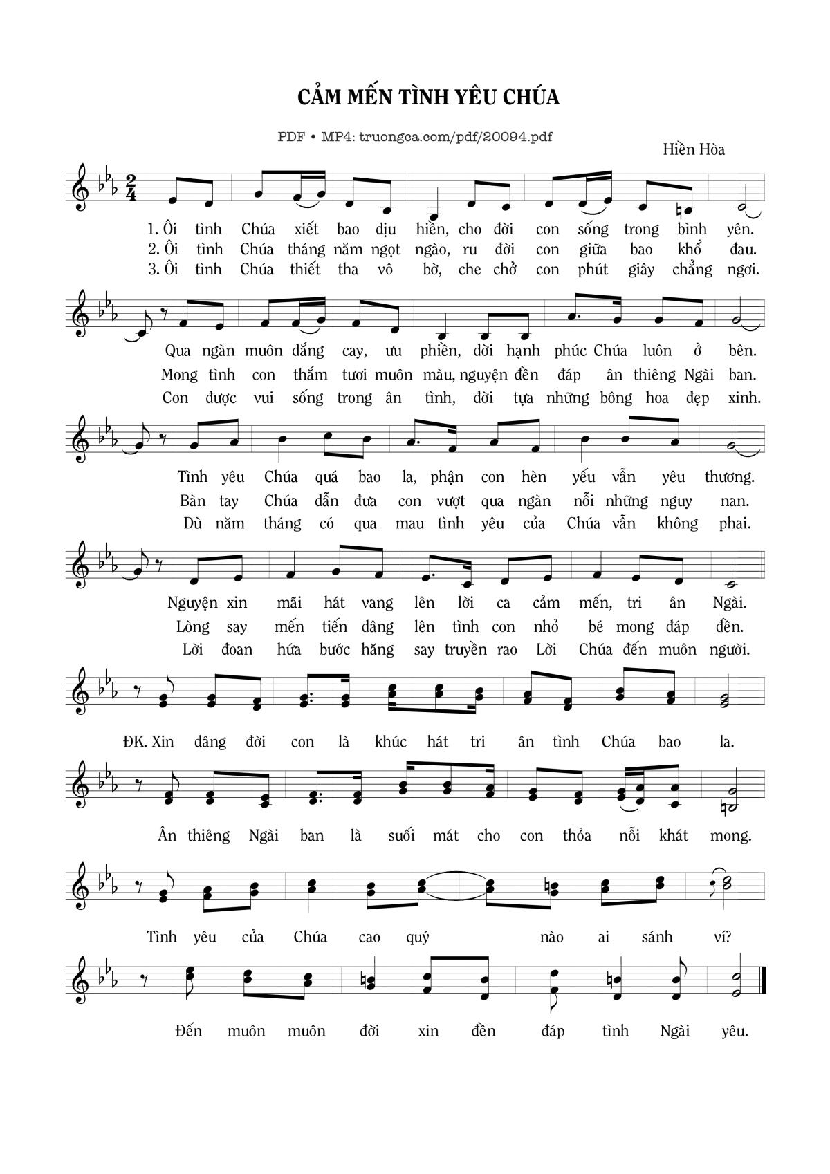 Hiền Hòa Ôi tình Chúa xiết bao dịu hiền [PDF] [Sheet] [Lyrics] [Mp4/Midi]
