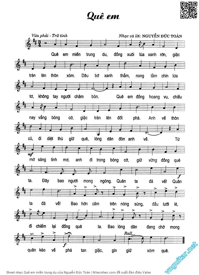 Nguyễn Đức Toàn Quê em miền trung du đồng suối lúa xanh rờn [PDF] [Sheet] [Lyrics] [Mp4/Midi]