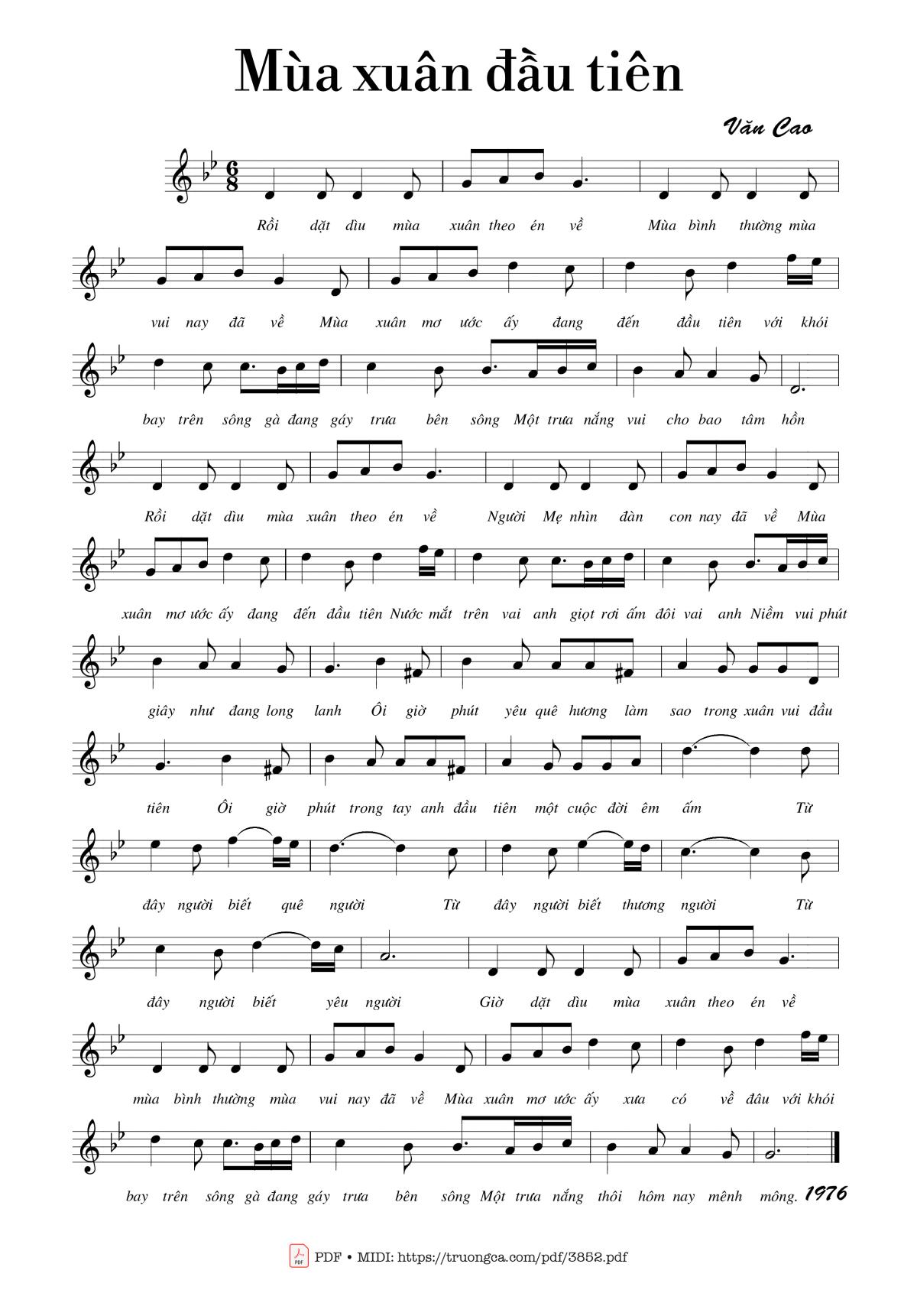 Văn Cao Rồi dặt dìu mùa xuân theo én về Mùa bình thường mùa vui nay đã về [PDF] [Sheet] [Lyrics] [Mp4/Midi]