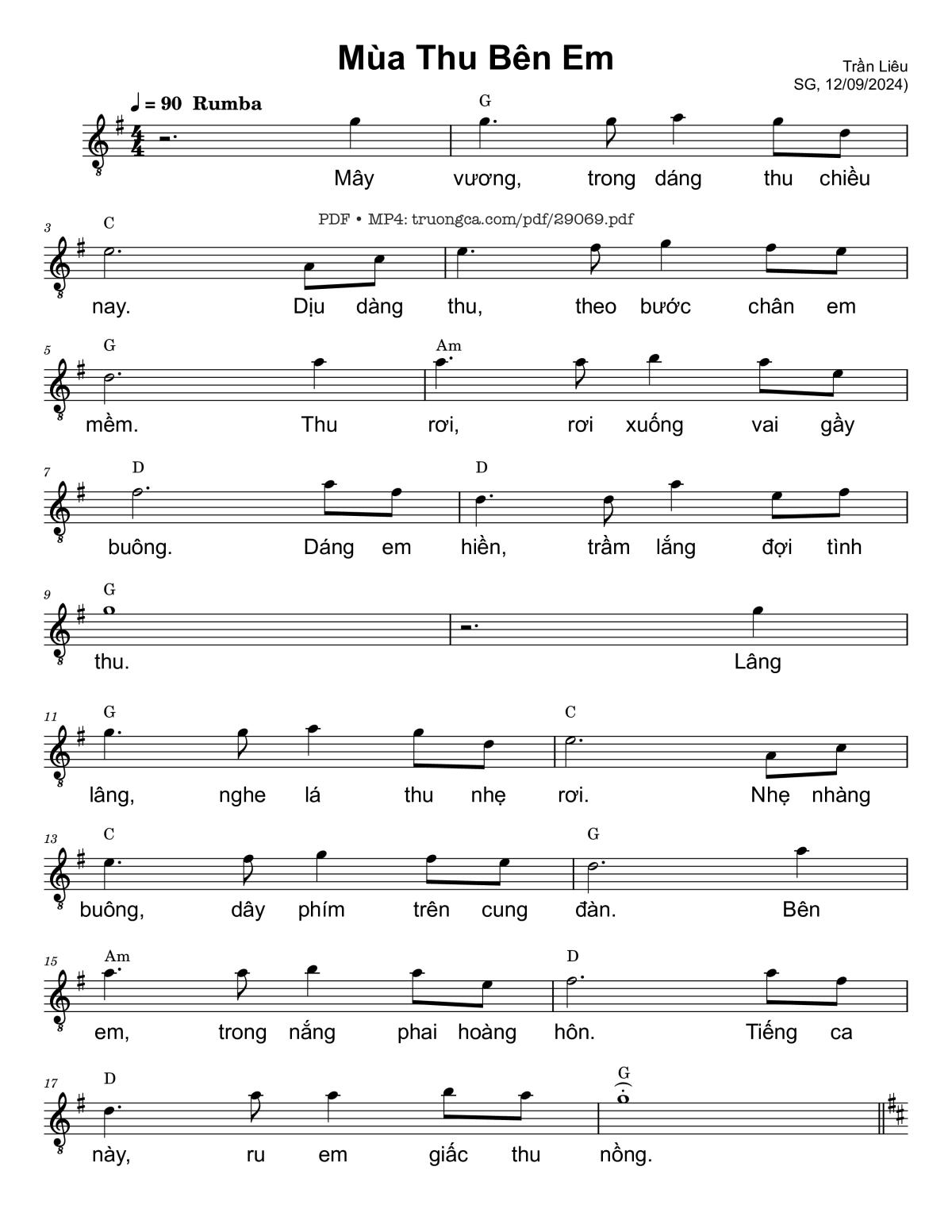 Trần Liêu Rumba Mây vương trong dáng thu chiều nay Dịu dàng thu [PDF] [Sheet] [Lyrics] [Mp4/Midi]
