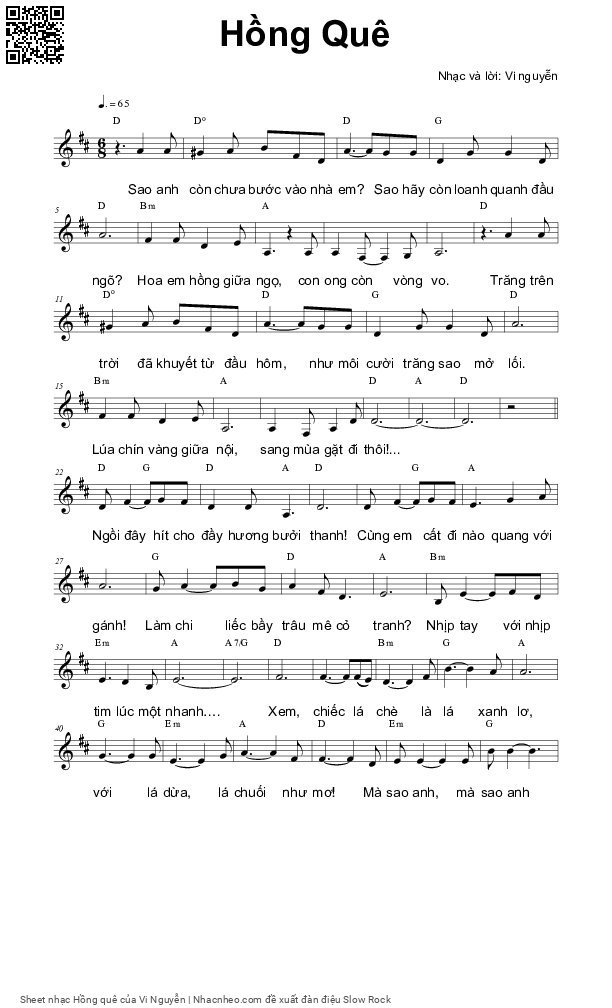 Vi Nguyễn Sao anh còn chưa bước vào nhà em Sao hãy còn loanh quanh đầu ngõ [PDF] [Sheet] [Lyrics] [Mp4/Midi]