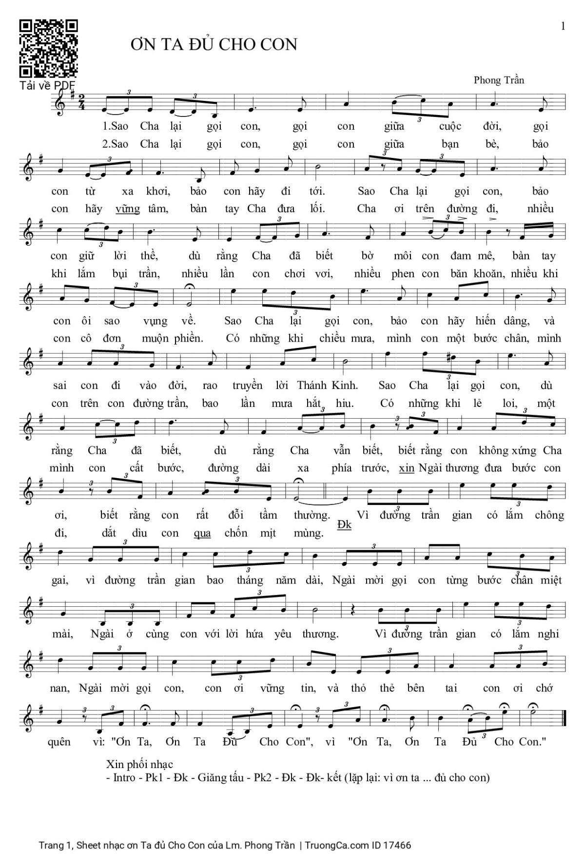 More similar sheets PDF ơn Ta đủ Cho Con: