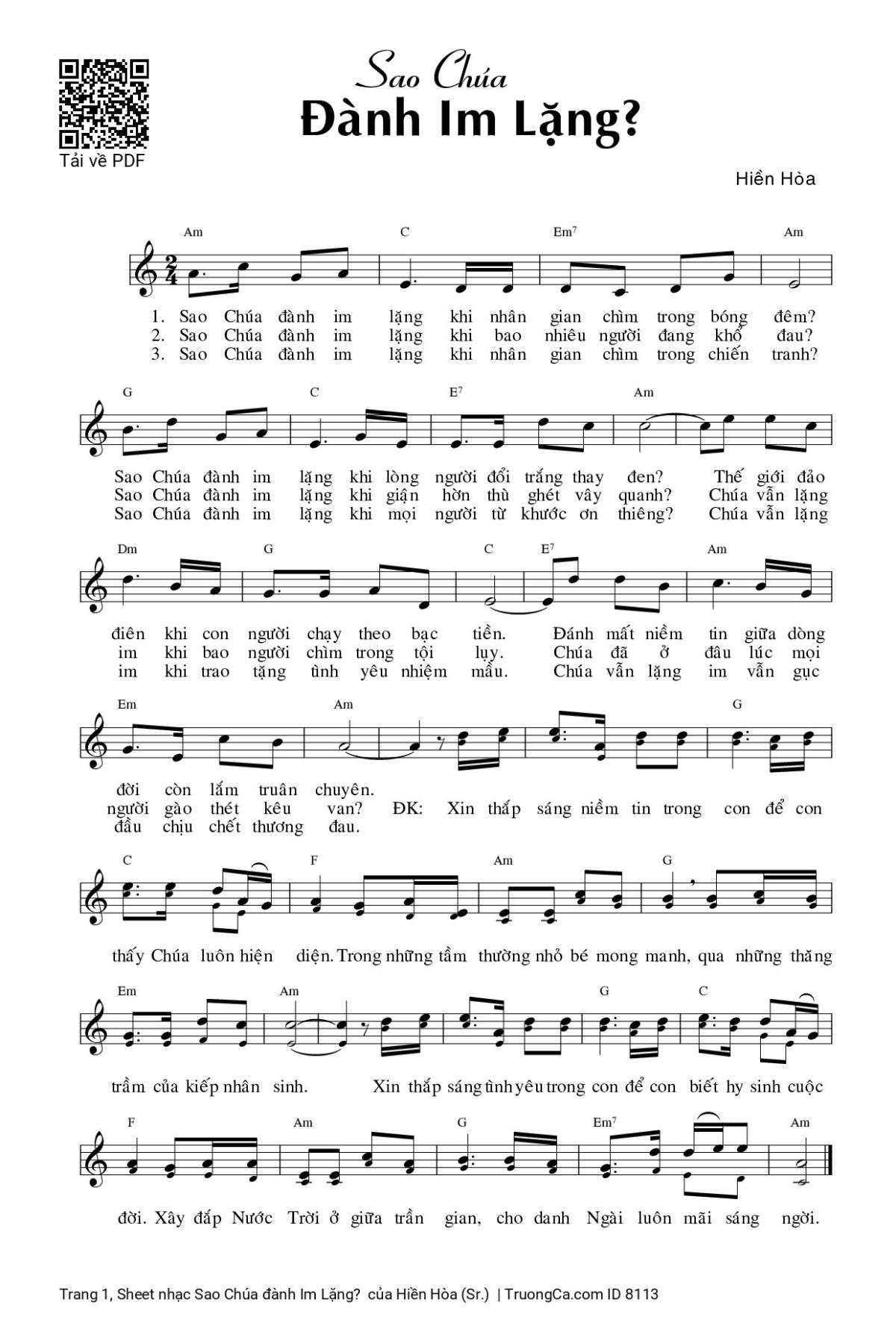 Hiền Hòa (Sr.) Sao Chúa đành im lặng khi lòng người đổi trắng thay đen [PDF] [Sheet] [Lyrics] [Mp4/Midi]