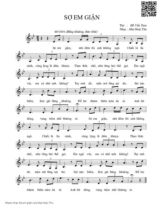 Mai Hoài Thu Sợ em giận nên đêm rồi anh không ngủ Chiếc lá lìa cành cũng lặng lẽ đêm khuya [PDF] [Sheet] [Lyrics] [Mp4/Midi]