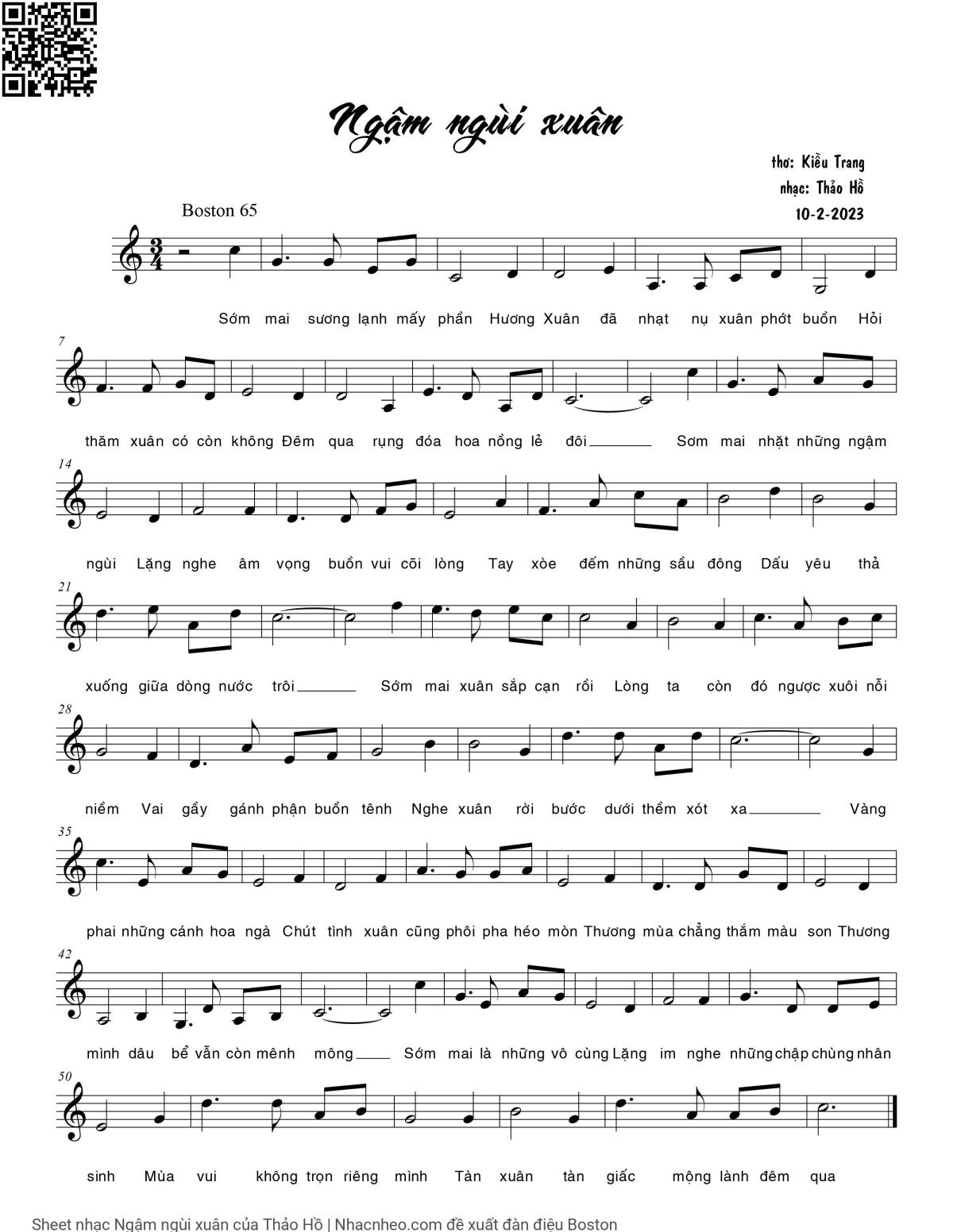 Thảo Hồ Sớm mai sương lạnh mấy phần Hương xuân đã nhạt nụ xuân phớt buồn [PDF] [Sheet] [Lyrics] [Mp4/Midi]