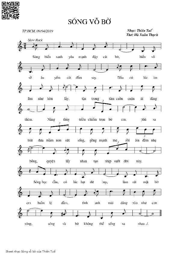 Thiên Tuế Sóng biển xanh yêu mạnh đập cát bờ Biển vỗ về âu yếm cát đắm say [PDF] [Sheet] [Lyrics] [Mp4/Midi]