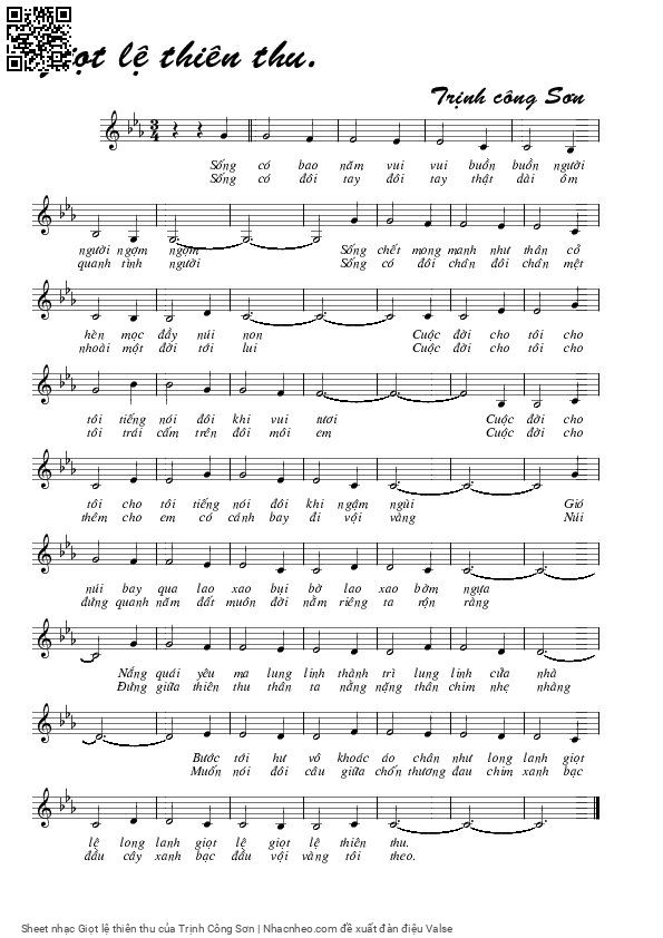 The Videos/audios Giọt lệ thiên thu by Trịnh Công Sơn were embed from Youtube, Musescore or the other 3rd links. Videos are subject to 3rd's copyright control and may be removed by YouTube's copyright rules and 3rd's policies or maybe included advertisements. If you cannot access to these songs, this mean that have been removed.