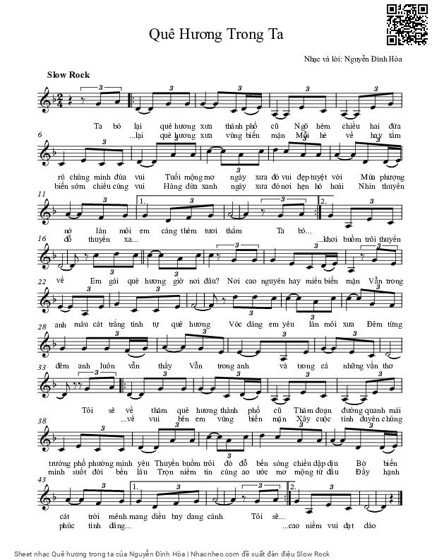 Nguyễn Đình Hòa Ta bỏ lại quê hương xưa thành phố cũ [PDF] [Sheet] [Lyrics] [Mp4/Midi]