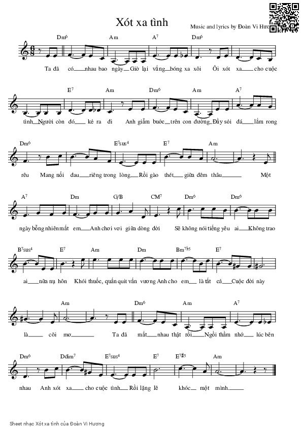 The Videos/audios Xót xa tình by Đoàn Vi Hương were embed from Youtube, Musescore or the other 3rd links. Videos are subject to 3rd's copyright control and may be removed by YouTube's copyright rules and 3rd's policies or maybe included advertisements. If you cannot access to these songs, this mean that have been removed.