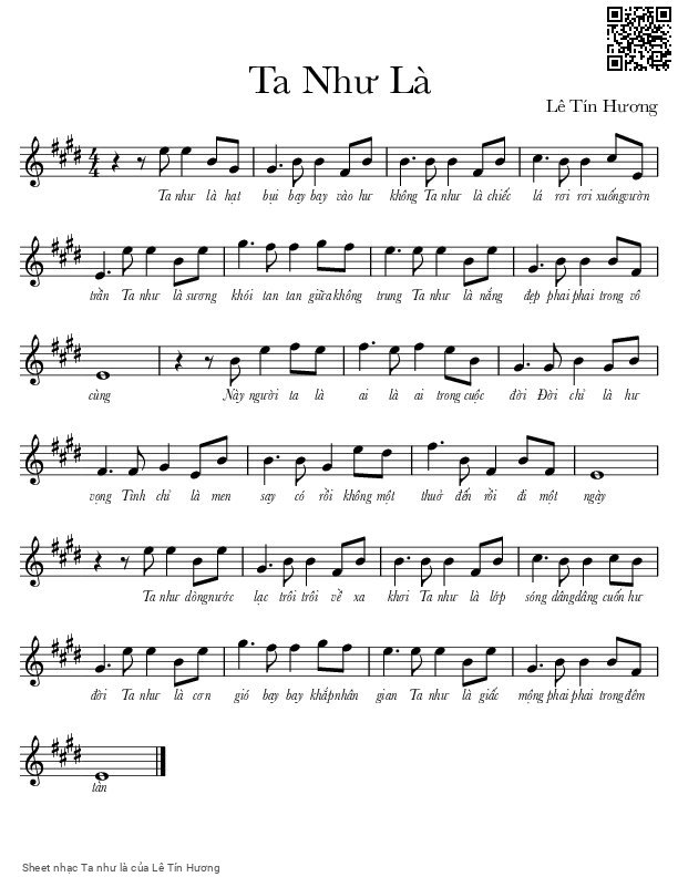 Lê Tín Hương Ta như là hạt bụi bay bay vào hư không Ta như là chiếc lá rơi rơi xuống vườn trần [PDF] [Sheet] [Lyrics] [Mp4/Midi]