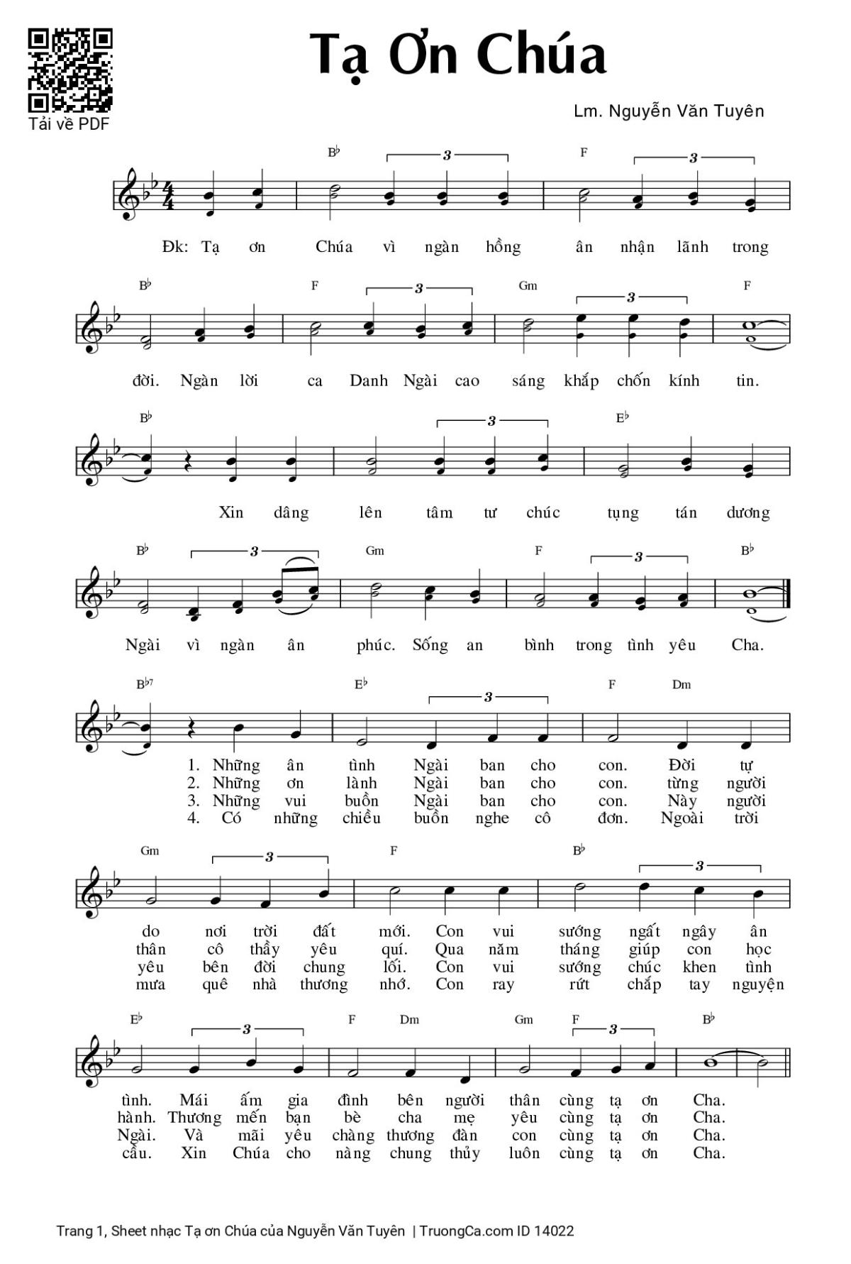 Nguyễn Văn Tuyên Tạ ơn Chúa vì ngàn hồng ân nhận lãnh trong đời [PDF] [Sheet] [Lyrics] [Mp4/Midi]