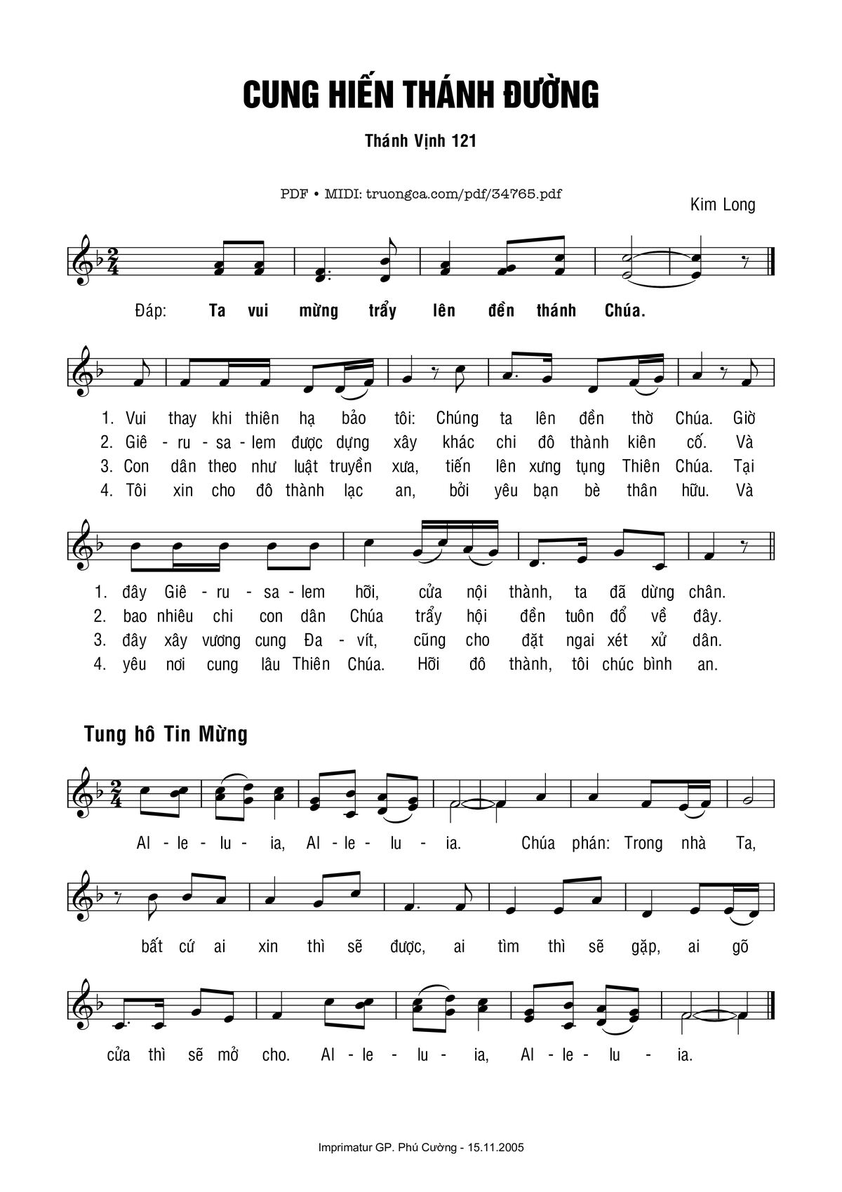 Kim Long Ta vui mừng trẩy lên đền thánh Chúa Vui thay khi thiên hạ bảo tôi Chúng ta lên đền thờ Chúa [PDF] [Sheet] [Lyrics] [Mp4/Midi]