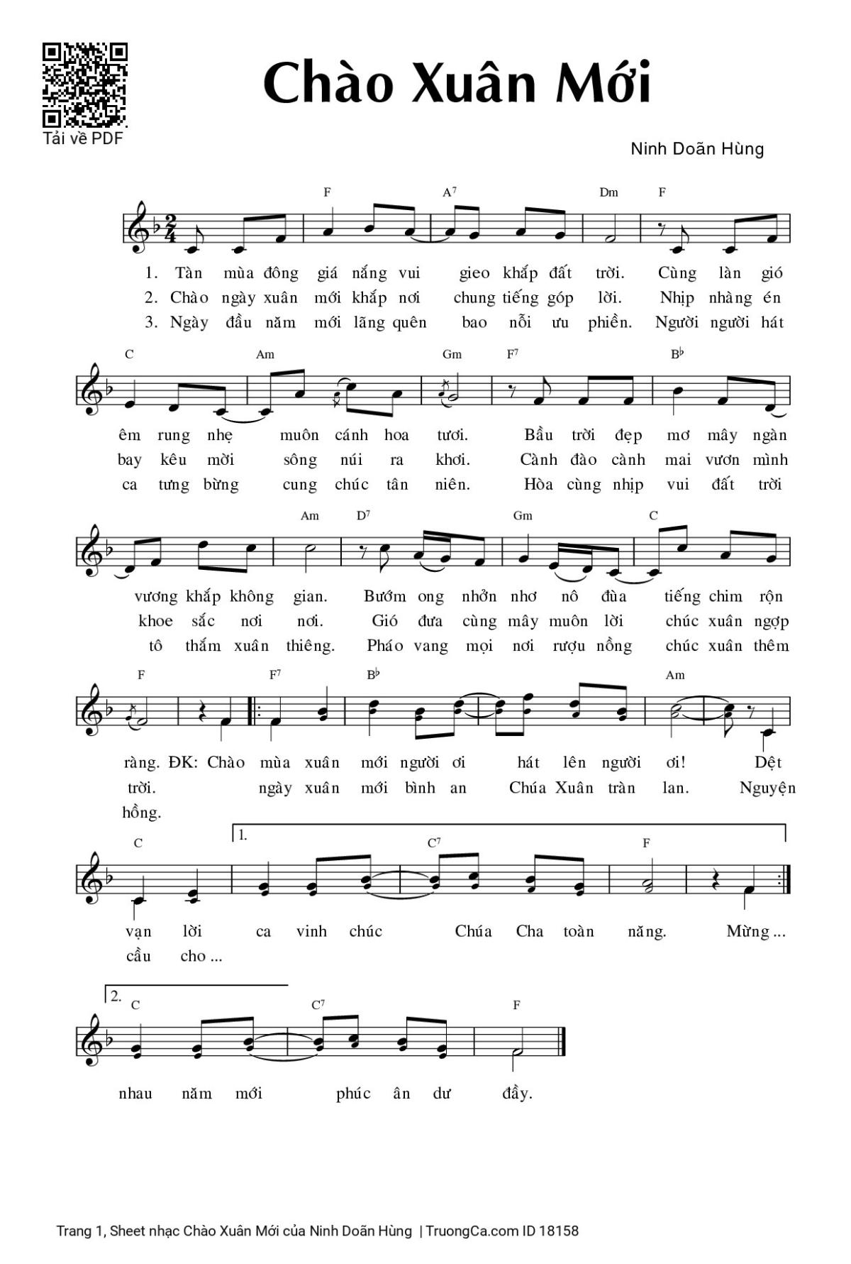 Điệp khúc: Chào mùa xuân mới người ơi hát lên người ơi! Dệt vạn lời ca vinh chúc Chúa Cha toàn năng. Mừng ngày xuân mới bình an Chúa Xuân tràn lan. Nguyện cầu cho nhau năm mới phúc ân dư đầy.