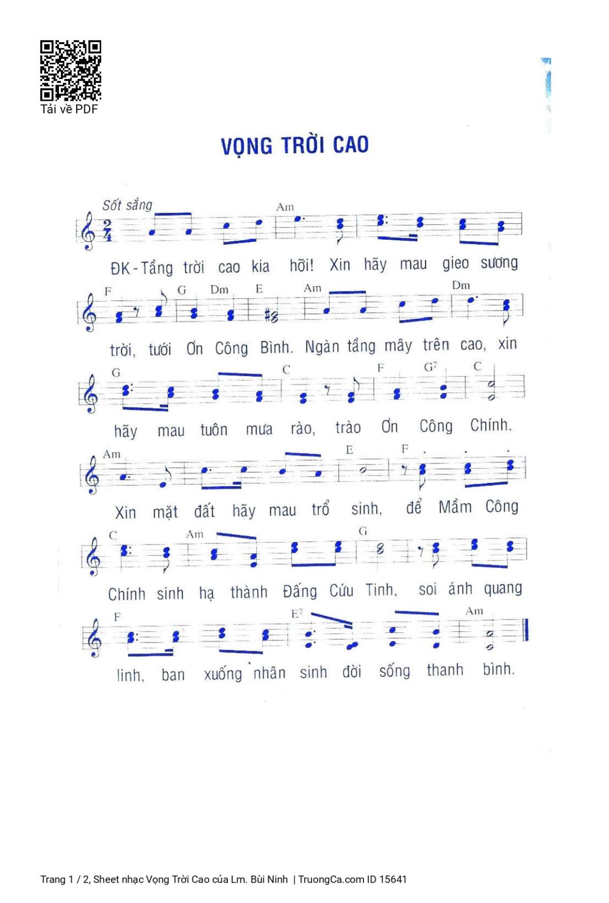 Điệp khúc. Tầng trời cao kia hỡi! Xin hãy mau gieo sương trời, tưới Ơn Công Bình. Ngàn tầng mây trên cao, xin hãy mau tuôn mưa rào, trào Ơn Công Chính. Xin mặt đất hãy mau trổ sinh, để Mầm Công Chính sinh hạ thành Đấng Cứu Tinh, soi ánh quang linh, ban xuống nhân sinh đời sống thanh bình.
