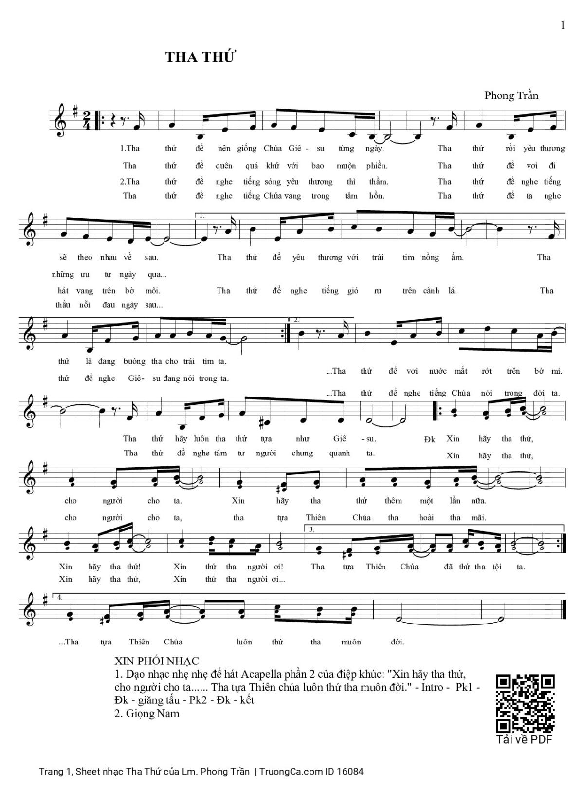 More similar sheets PDF Tha Thứ: