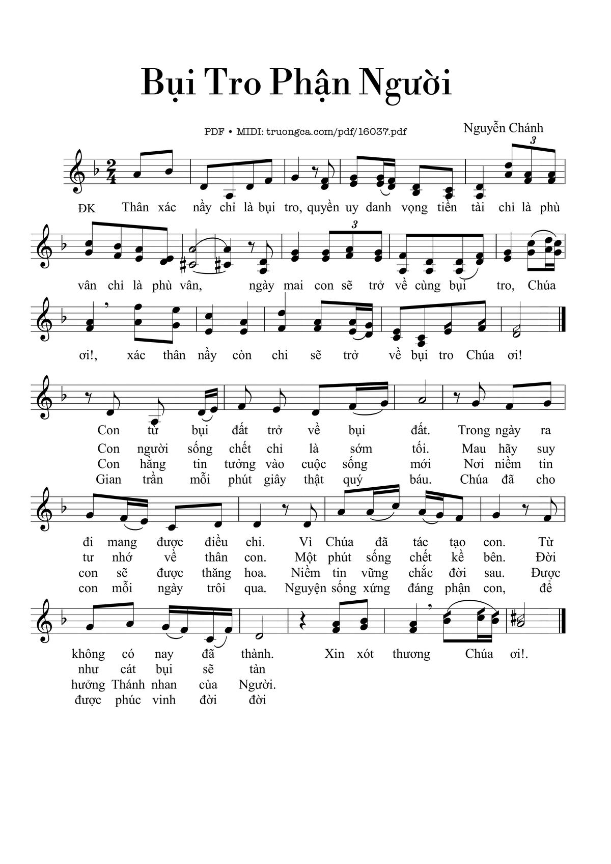 Điệp khúc. Thân xác này chỉ là bụi tro, quyền uy danh vọng tiền tài chỉ là phù vân, chỉ là phù vân. Ngày mai con sẽ trở về bụi tro, Chúa ơi, xác thân này còn chi sẽ trở về bụi tro Chúa ơi!