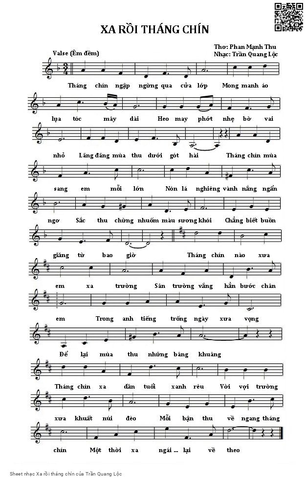 Trần Quang Lộc Tháng chín ngập ngừng qua cửa lớp Mong manh áo lụa tóc mây dài [PDF] [Sheet] [Lyrics] [Mp4/Midi]